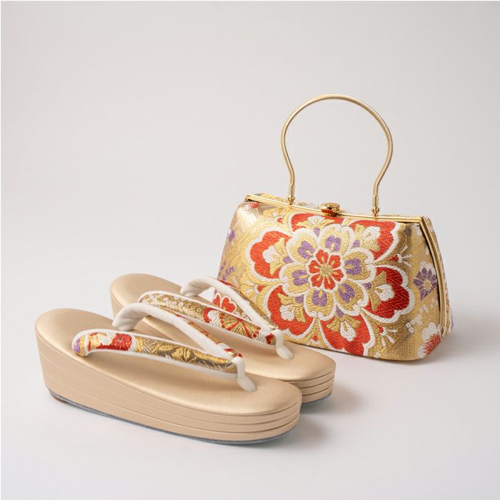 正絹帯地を使用した上品で華やかな礼装用草履バッグセットです