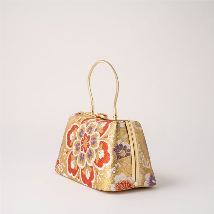 【バッグ】本体:絹100%(金属糸使用)/口金:真鍮