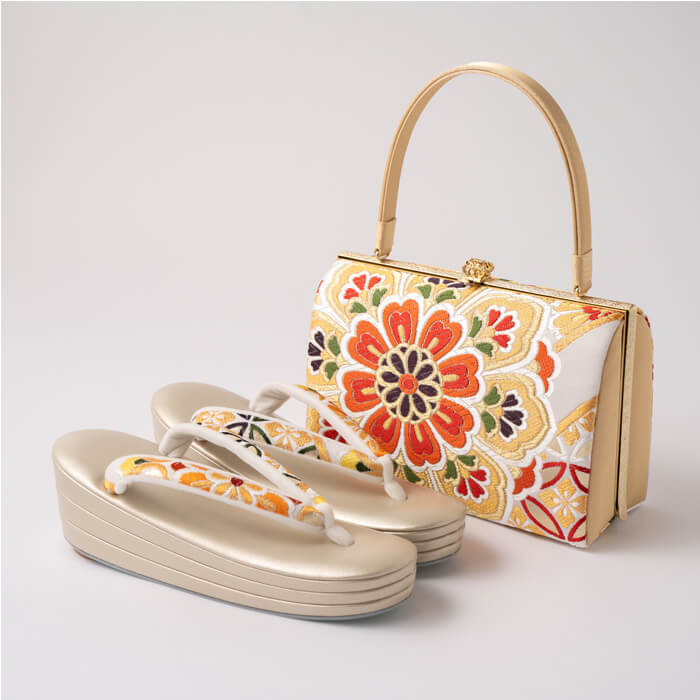 正絹帯地を使用した上品で華やかな礼装用草履バッグセットです