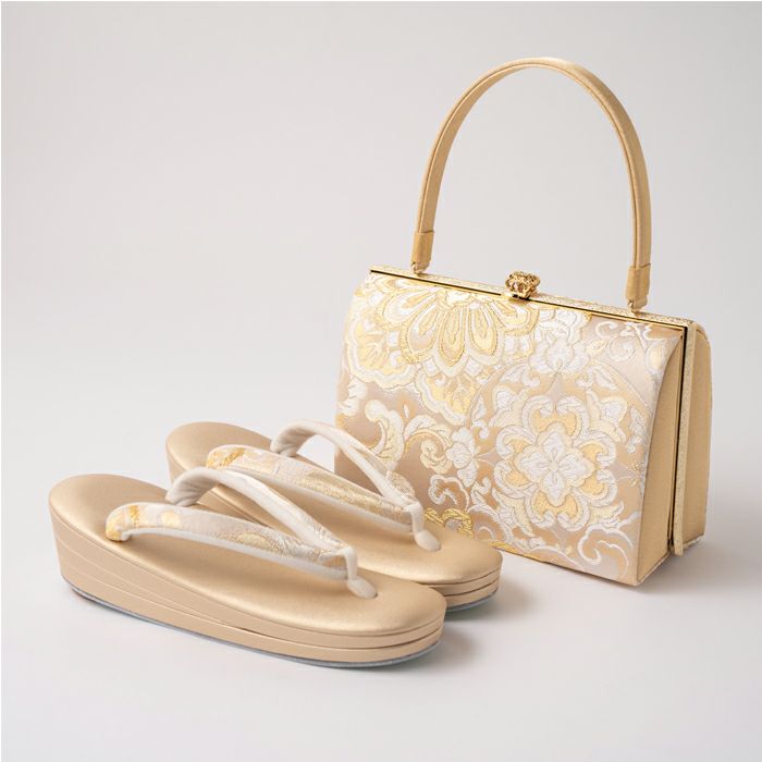 正絹帯地を使用した上品で華やかな礼装用草履バッグセットです