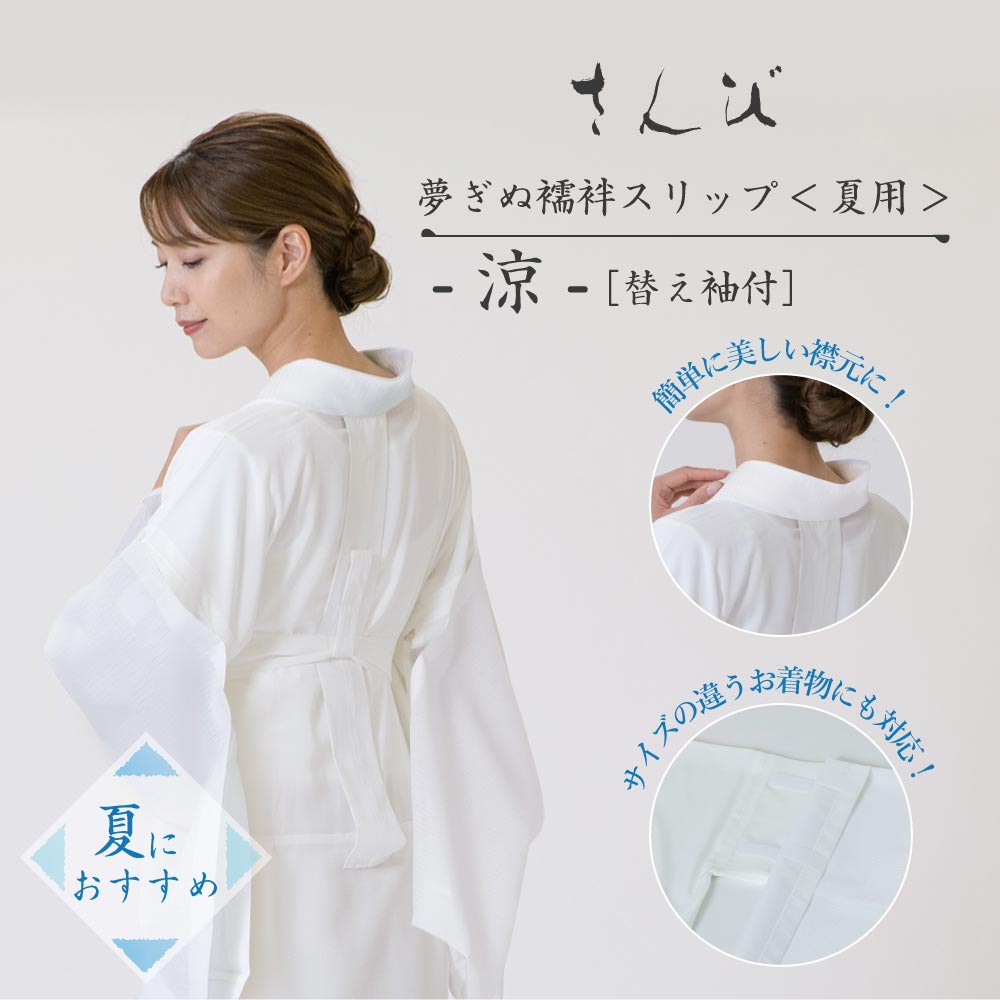 衿元がキレイに仕上がる夢ぎぬ長襦袢の進化版 【オンライン限定】さんび夢ぎぬ襦袢スリップ≪雅≫ 東レセオα うそつき長襦袢 袖取り外し 裄調節可能 日本製