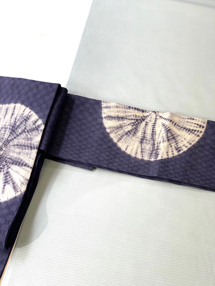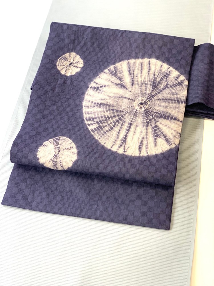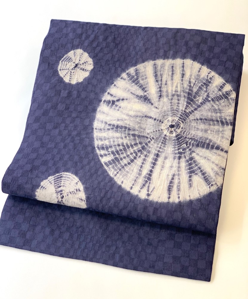 有松で一点一点絞り染めを施した諸紙布(もろしふ)の名古屋帯