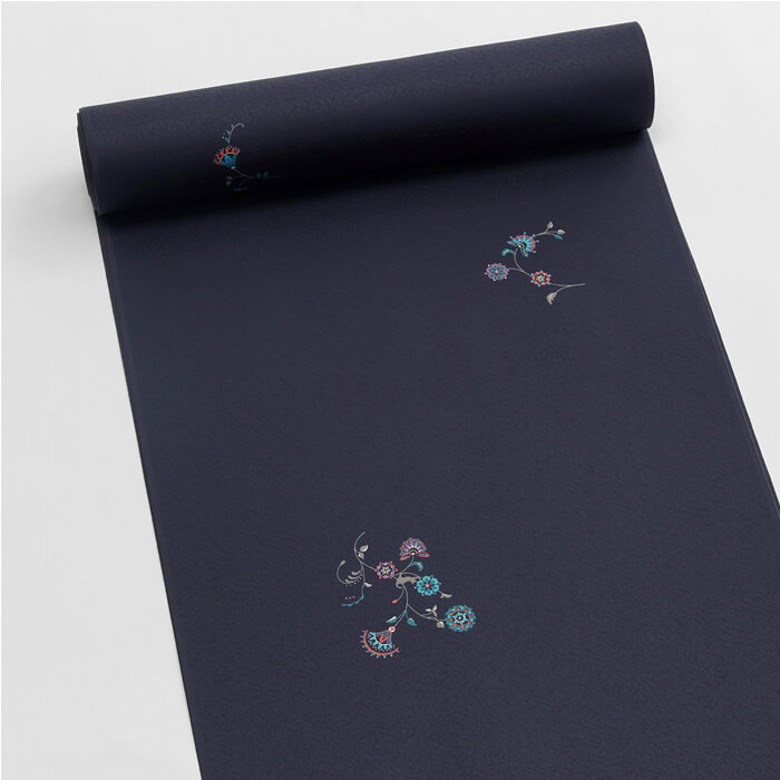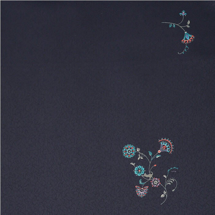 繊細なタッチで描いた唐花を、色鮮やかに彩色をしたエキゾチックな飛び小紋です。