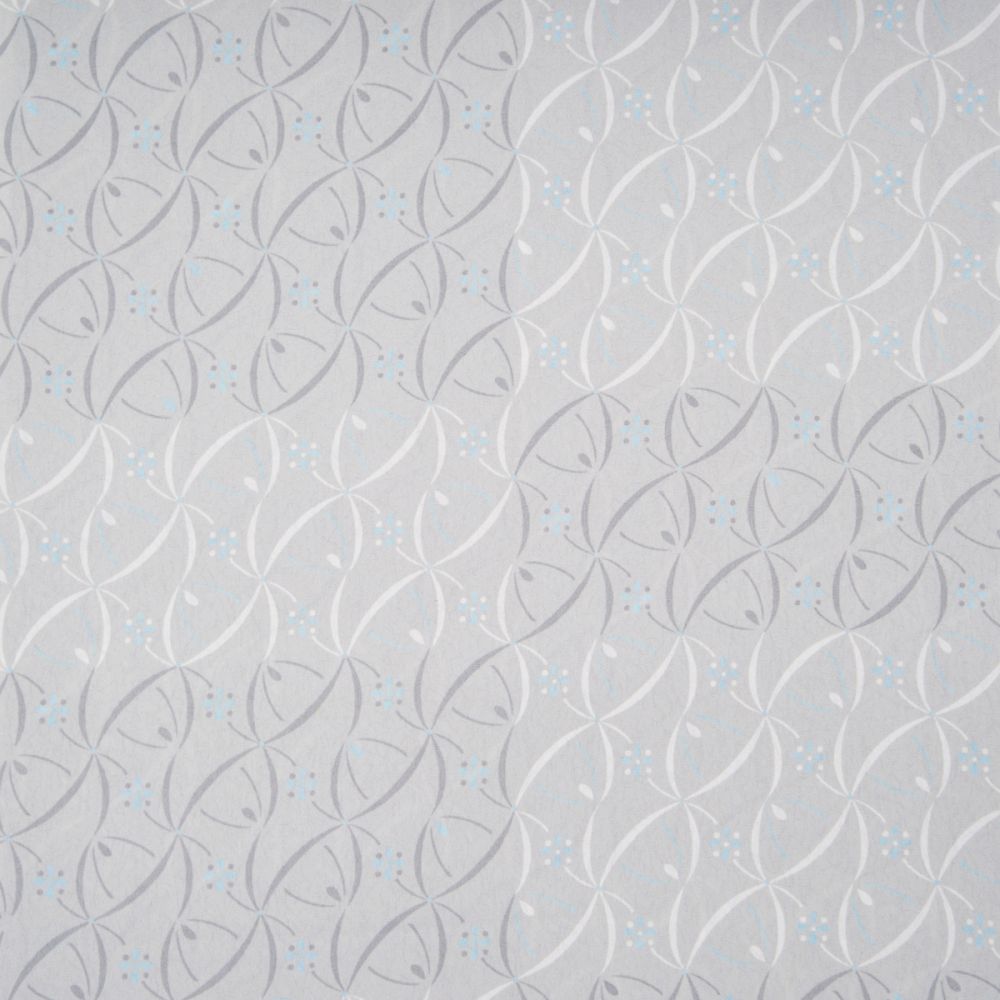 変わり市松に流線文様をモダンに表現した小紋は、水色の花がアクセント。