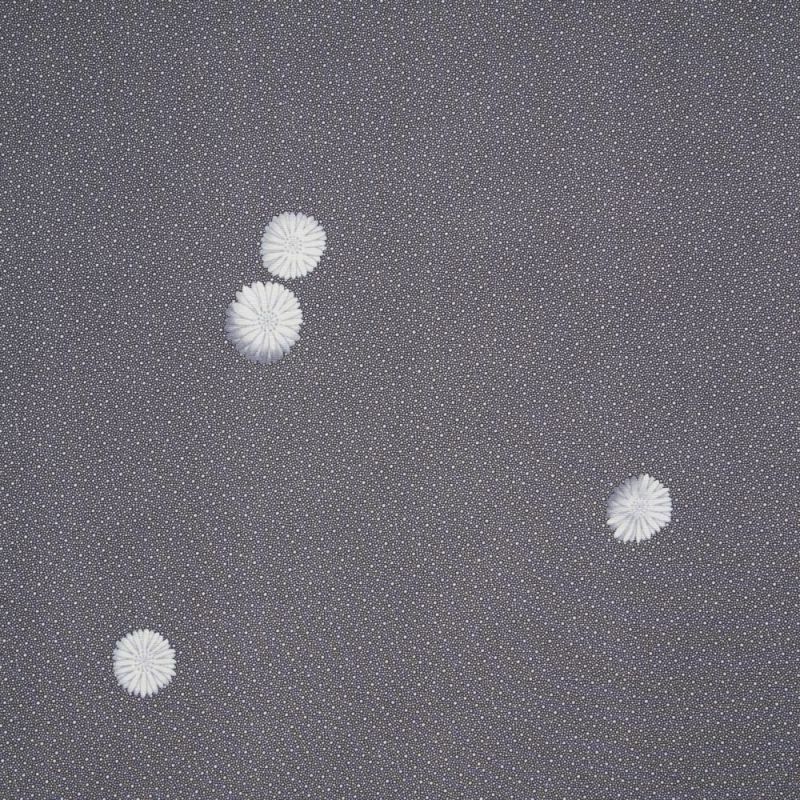 あられ文様の江戸小紋地に菊をあしらった飛び小紋は、