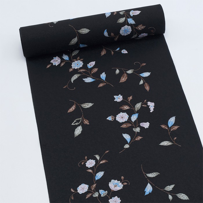 地色とモチーフのコントラストが鮮やかで、落ち着いた中にも華やぎのある小紋は、シーンに映える洗練された装いに。