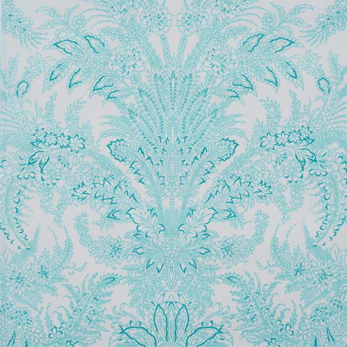 繊細でエキゾチックなモチーフを、清涼感のある鮮やかな配色でまとめた小紋は、
