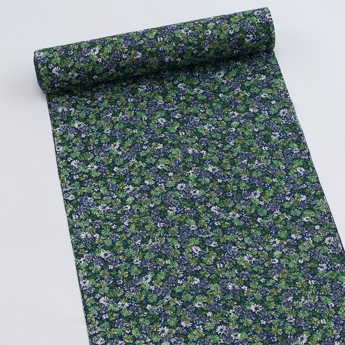 一面に敷き詰めた小花を濃淡で表現し、花びらには手書き風の縁取りを添え、立体的に仕上げました。