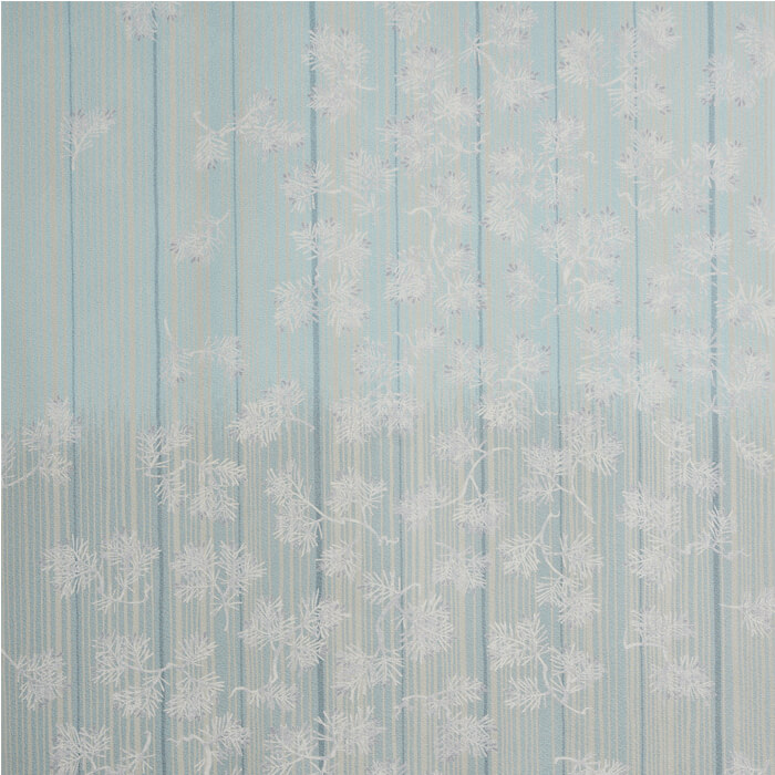 背景には色も太さもランダムに並んだ縞と大きく染め分けた横段。