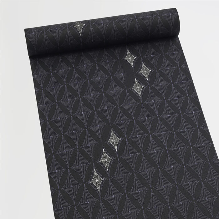 部分的に色を変えた菱をリズミカルに配置し、濃色ながらも軽やかな印象に。