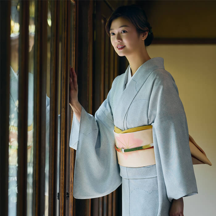 シルック®きものには、制電、防汚、撥水、撥油性能があり、天候を気にせずお楽しみいただけます。