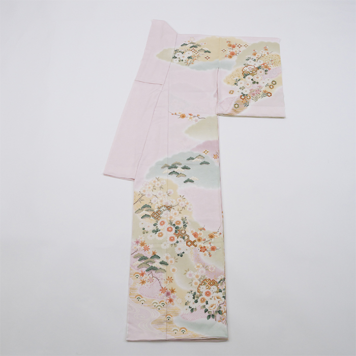 『東レシルック美來』使用 洗濯可能でお手軽 さんびオリジナル訪問着 【フルオーダーお仕立て】東レシルック訪問着 単衣仕立て さんびオリジナル ピンク 日本製