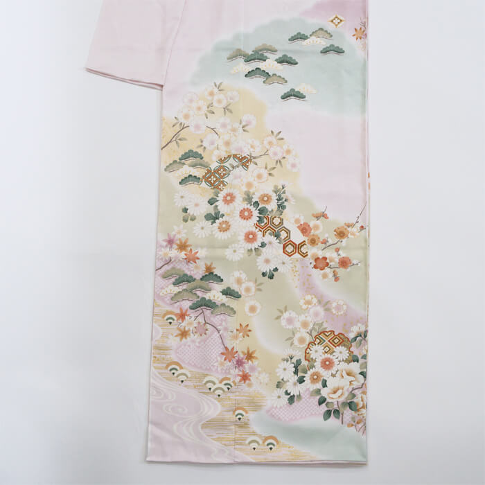 袖や裾にかけての雲取柄がとても綺麗で、華やかな印象を与えます