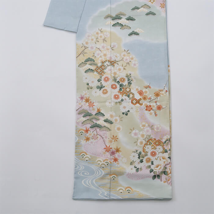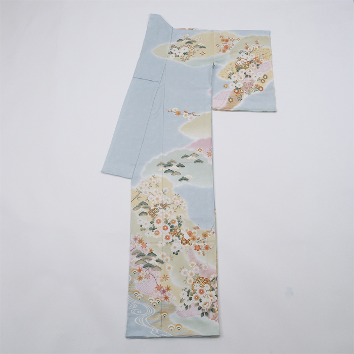『東レシルック美來』使用 洗濯可能でお手軽 さんびオリジナル訪問着 【フルオーダーお仕立て】東レシルック訪問着 単衣仕立て さんびオリジナル ブルー 日本製