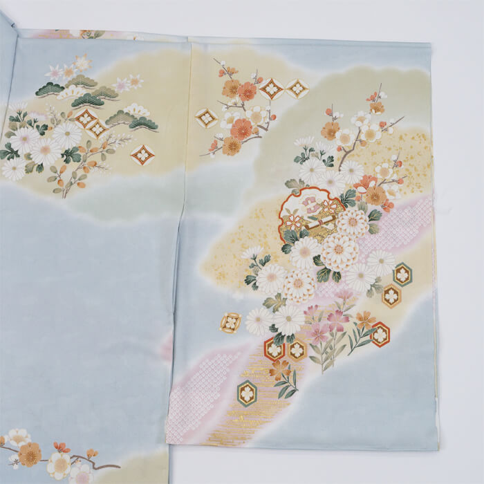 袖や裾にかけての雲取柄がとても綺麗で、華やかな印象を与えます