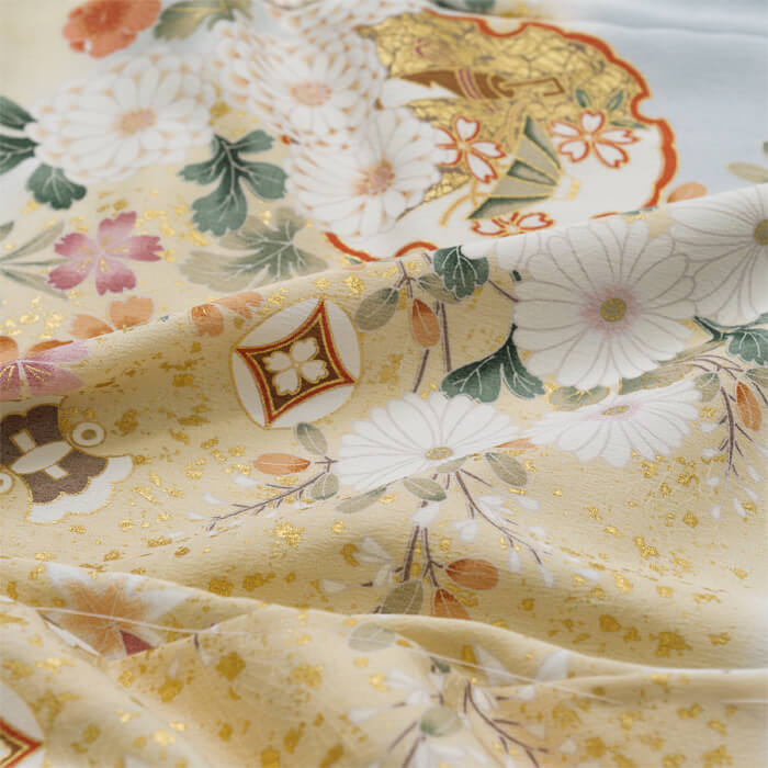 シルック®きものはしわになりにくいのですが、アイロンをかけることできれいに仕上がり見た目も美しくなります。アイロンがけする場合は、当て布をし、低~中温(120~140°C)でかけてください。