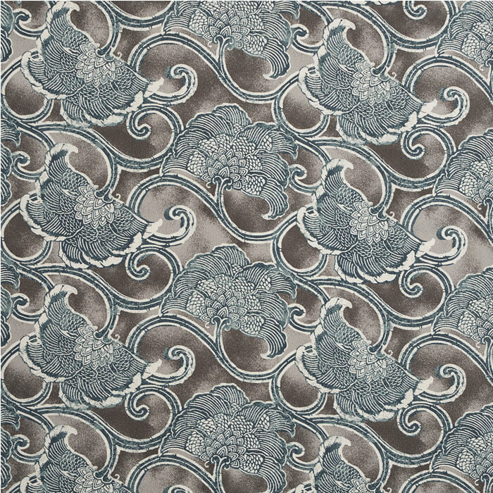 唐草の曲線と地色の濃淡が和らぎを添え、奥行き感のある小紋です。