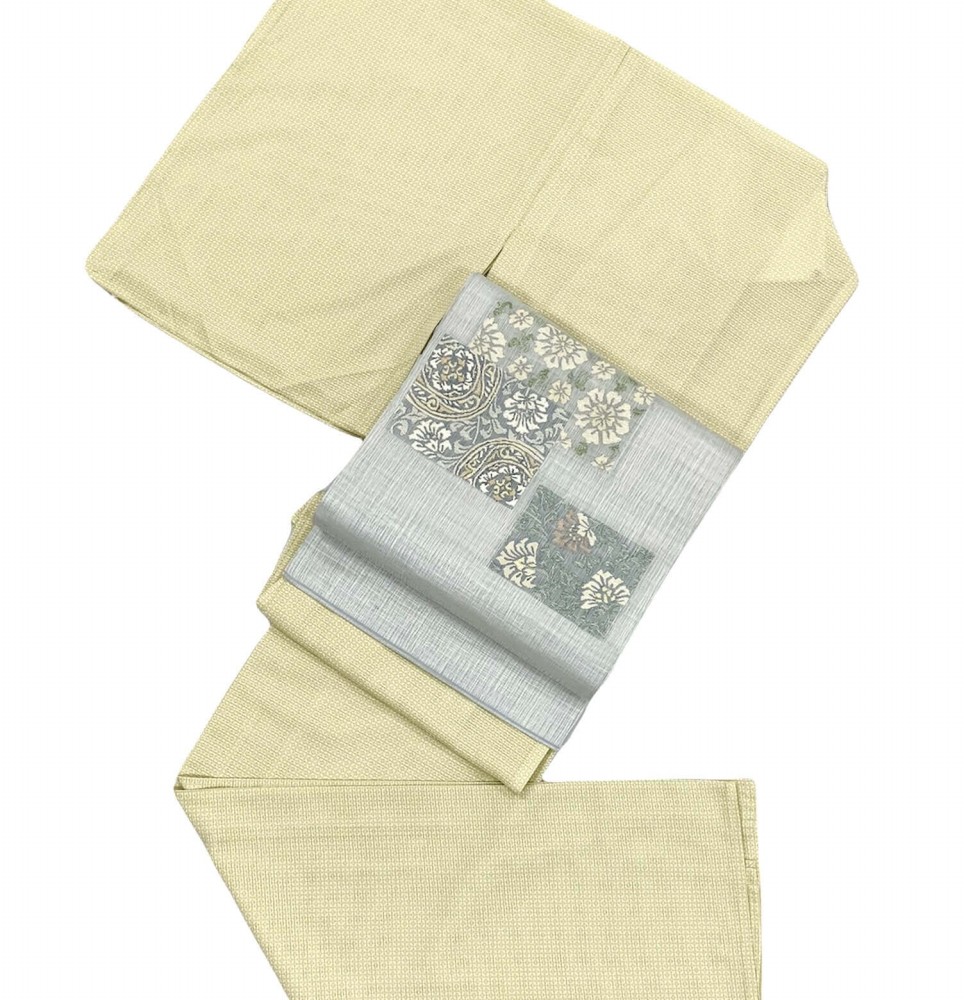 ニュートラルな色合いの鳥の子色は、多くの帯と相性が良く、すっきりとまとまるのが魅力。
