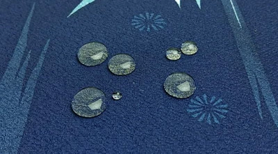 維表面の強力な防汚加工が、着用時のきものへの汚れの付着をガード。水や油をはじくので、雨の日の外出や水仕事も安心です。口紅など化粧品の汚れやシミもつきにくい防汚性能があり、洗濯で落ちやすい機能があります。