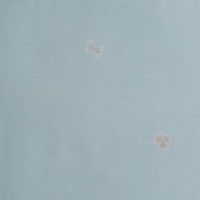 清涼感のあるミントグリーン地に、瑞々しい若松の葉が舞っている様が涼し気な飛び小紋です。