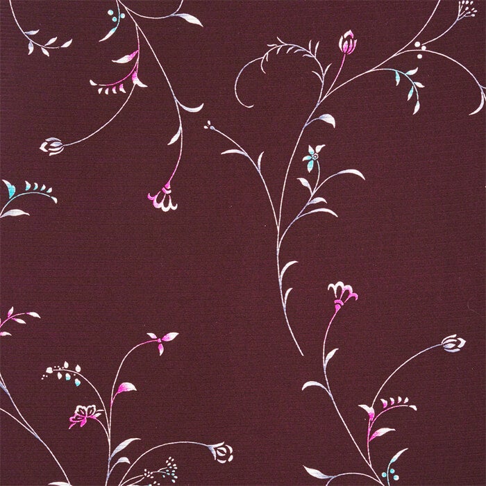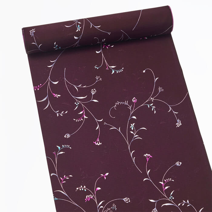 優美な細線表現を1色ごとに型を替え、何度も重ね染めを繰り返す技法は、