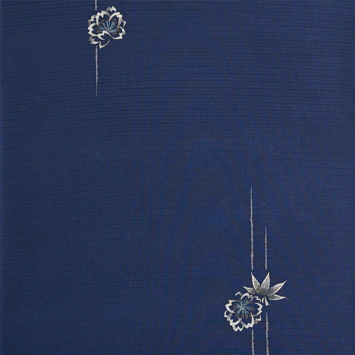 濃紺地にゴールド系の配色でまとめたエレガントな飛び小紋は、華やかな席にも重宝します。