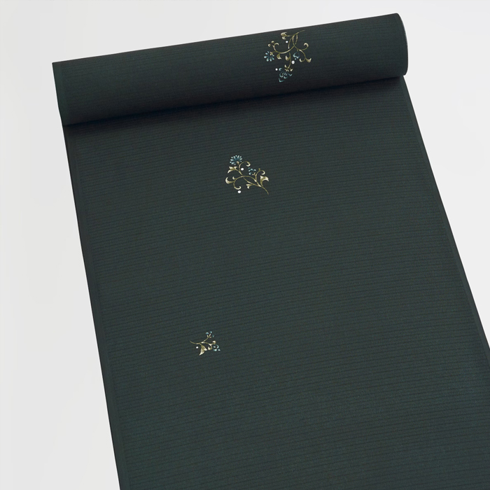 深緑の地に繊細な洋花を上品に表現した飛び小紋。