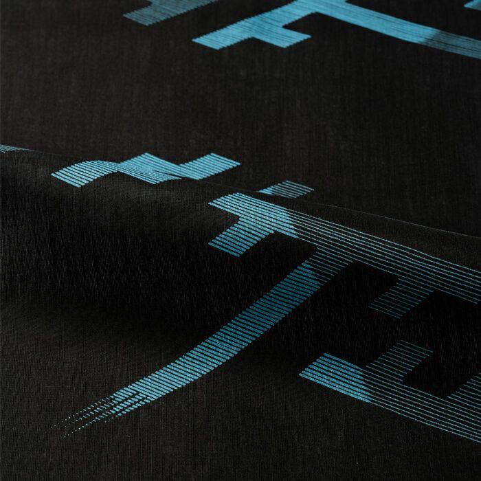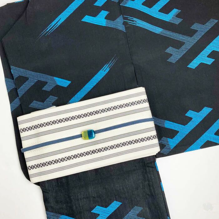 生地は「綿清水生地」を使用。清らかな川の流れを縦糸のスラブ糸で表現した生地で番手の異なる縦糸を使用し、染めたときに現れる自然な濃淡は清涼感を与えてくれます。