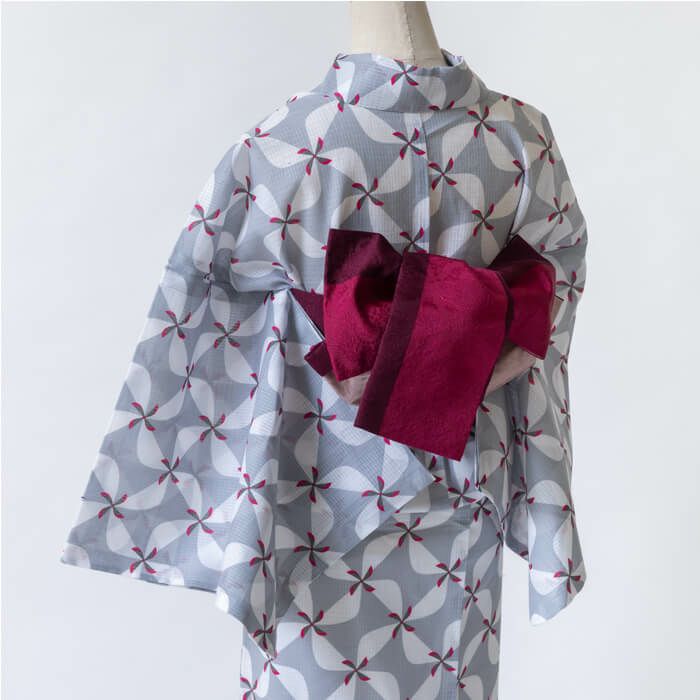 風車をモチーフにデザインされた浴衣です 大人っぽい深みのあるグレーは幅広い年代でお召し頂けます |