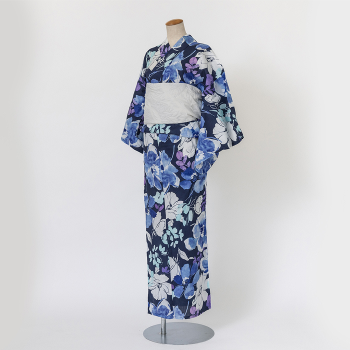 浴衣は日本の夏を伝統的に彩る最高のファッションです ゆかた 花古今 絵画風の花 (紺) 綿 ネイビー 仕立て上がり 中国製