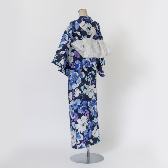 シルエットで表現された花には抜け感があり、紺地でも涼やかな印象です。