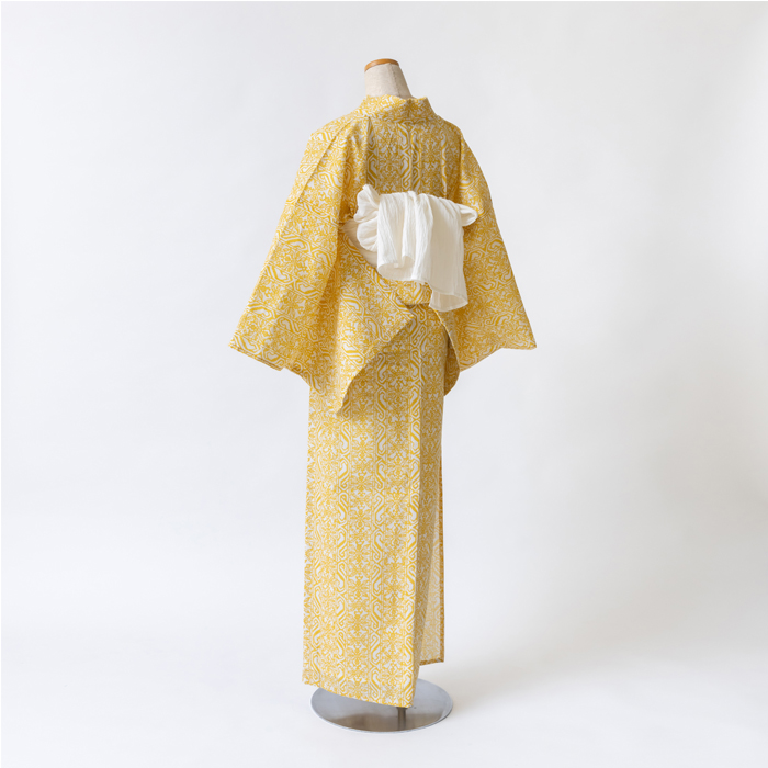 ![]() ●カラー:黄 ●サイズ: 身丈 164cm / 袖丈 49.3cm / 裄丈 68cm(お仕立て上がり寸法) ●適応身長: 約155cm~約167cm(着付けの際はおはしょりで着丈を調整可能なため、身長がさらに小さめのかたや大きめの方でもご着用いただけます) ●素材:綿 75%・麻25% ●原産国:日本 |