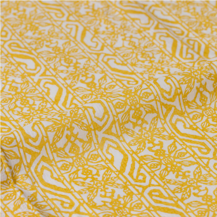 柄がデザインされた40~50cmほどの大きさの型を 高度な職人技で継ぎ目のわからないように寸分の狂いもなく 何度も繰り返し染めていく「長板染め」のゆかたです アラベスク調の細やかなデザインが目を引きます |