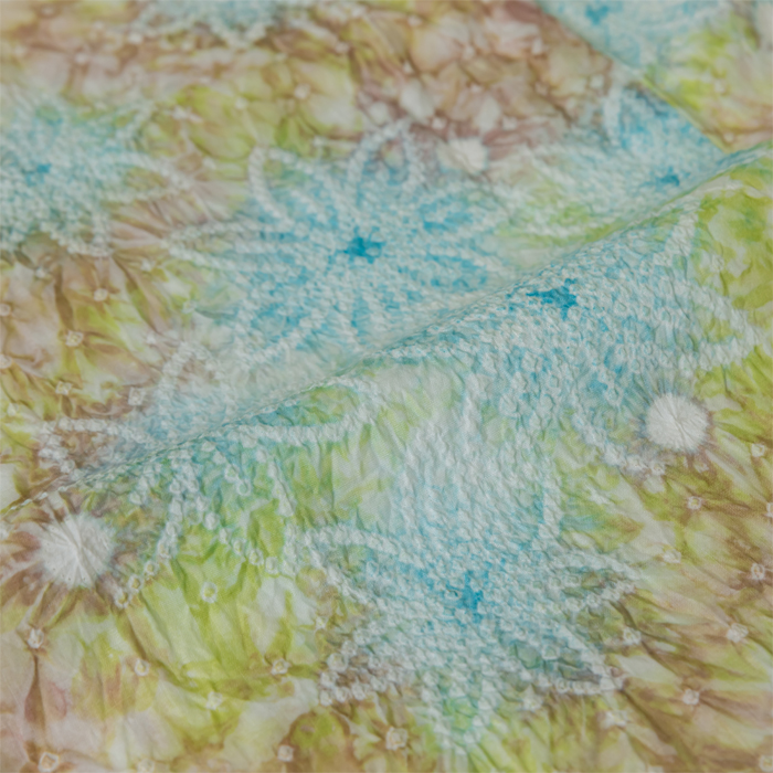 絞りの伝統技法が生み出す、立体感と奥行のある表情や