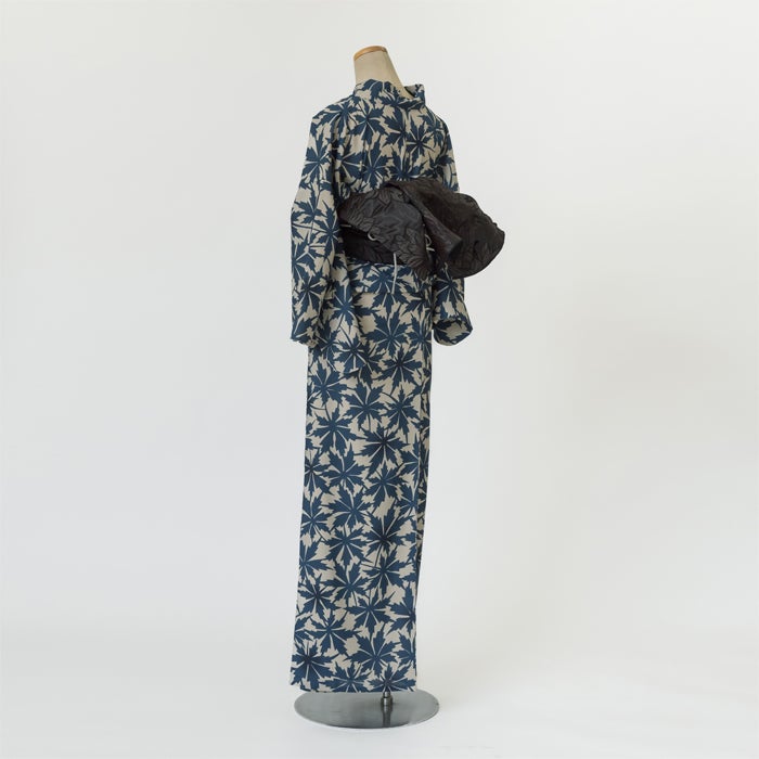 麻の葉を藍色の濃淡で大胆に表現した、粋で都会的な一着です