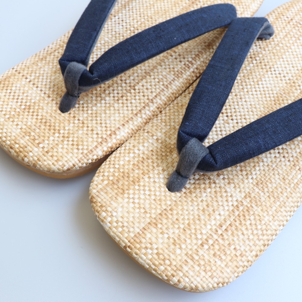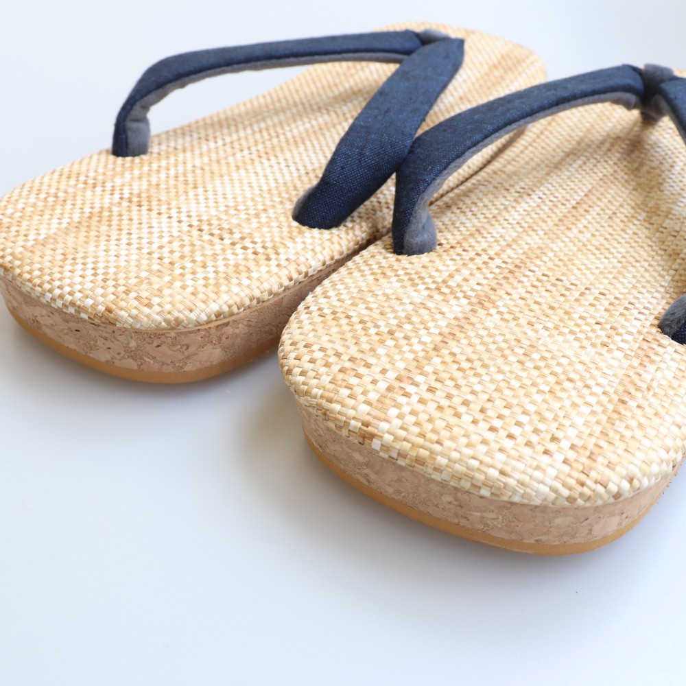 ●素 材:鼻緒表:麻100%/鼻緒裏:ポリエステル100%/台:ナイロン(パナマメッシュ)/芯:コルク/底:合成ゴム