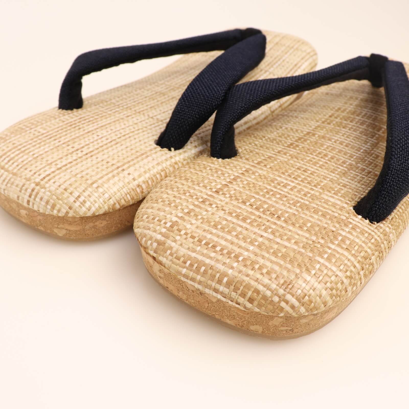 【MEN'S古今】無地鼻緒のカジュアル雪駄 男物雪駄 No.234 ブラック×ベージュ台 無地鼻緒 カジュアル草履 Мサイズ 25.0cm