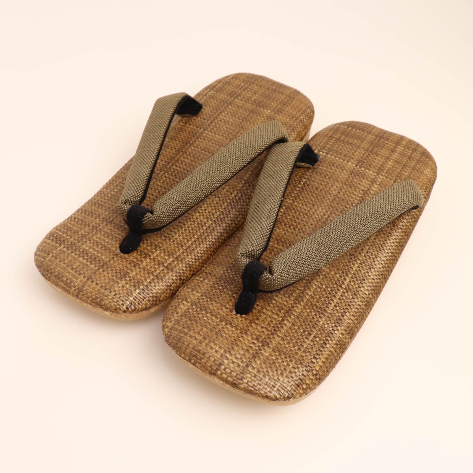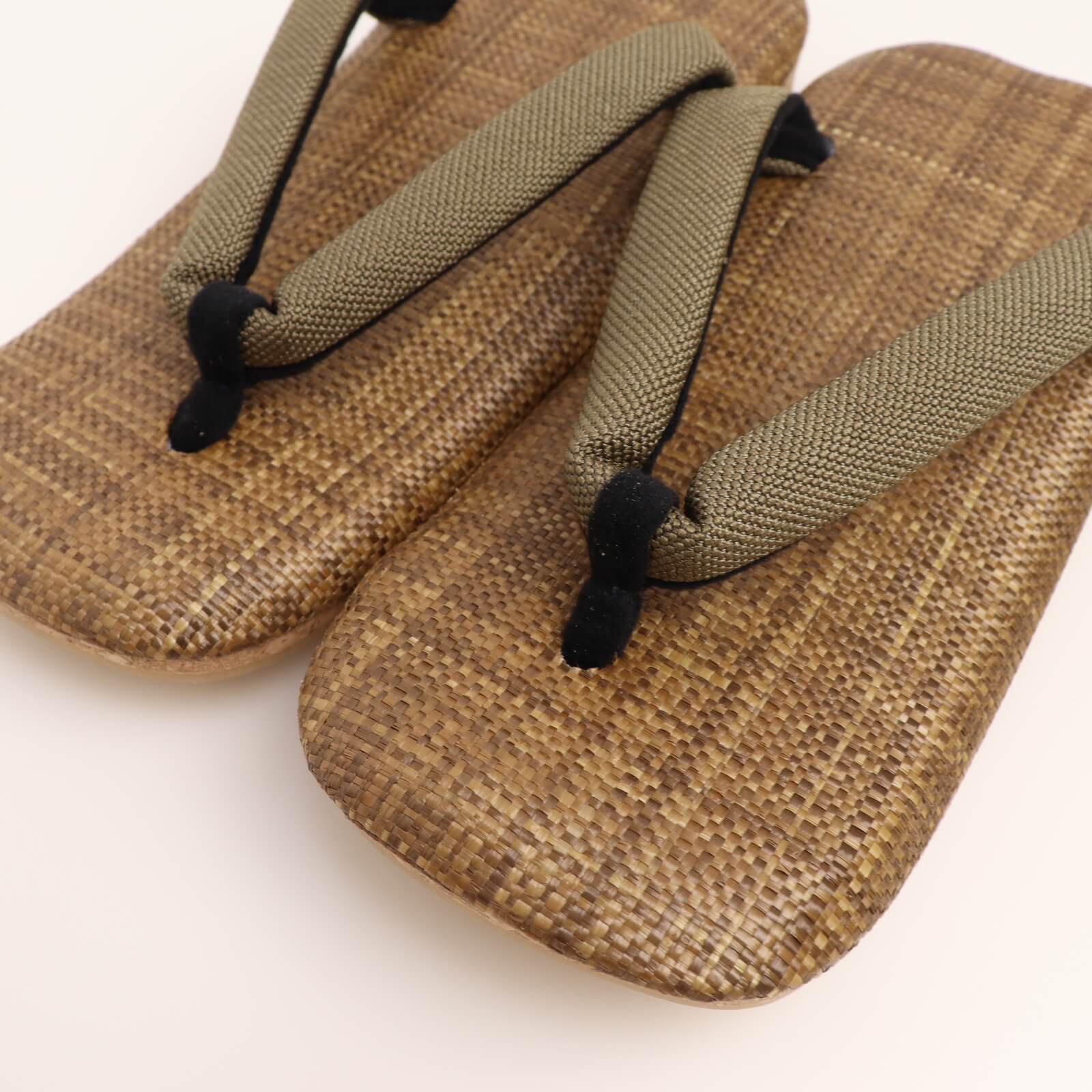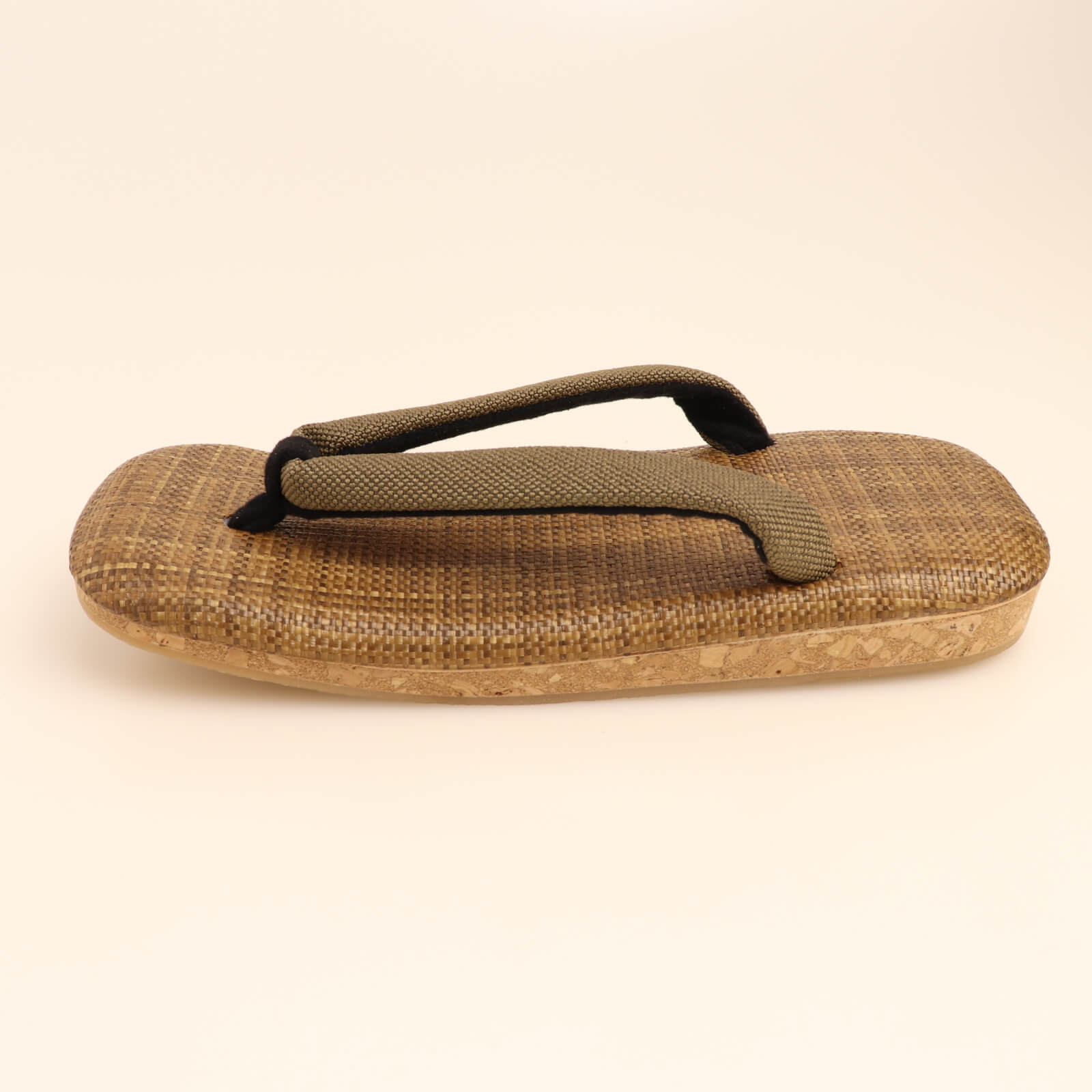 【MEN'S古今】無地鼻緒のカジュアル雪駄 男物雪駄 No.234 カーキ×茶台 無地鼻緒 カジュアル草履 Мサイズ 25.0cm