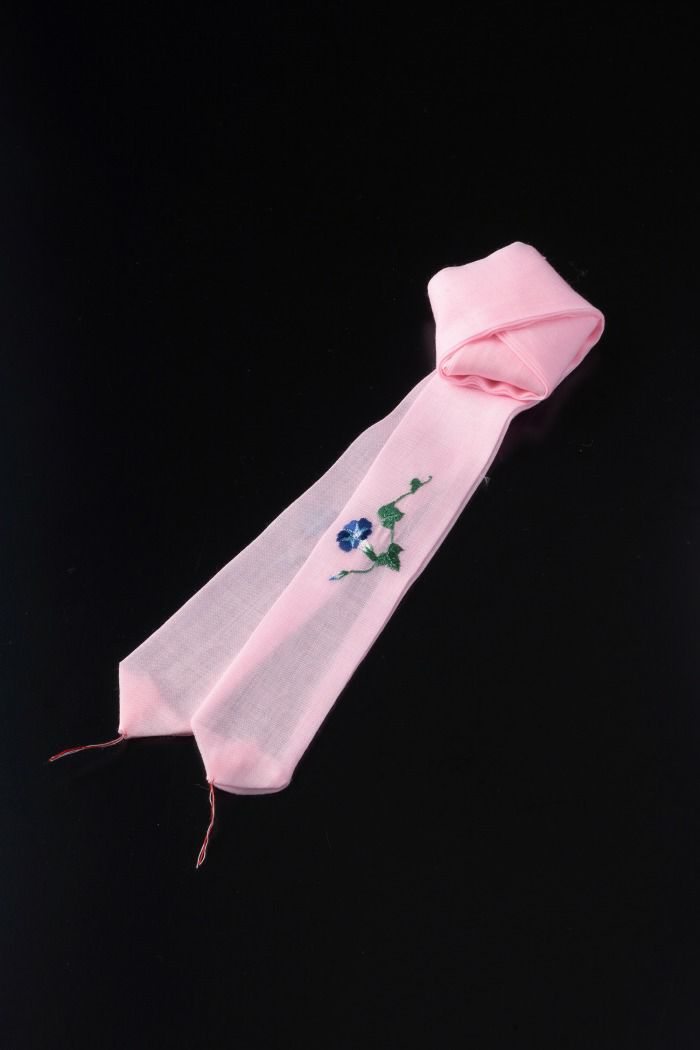 純毛モスリン(ウール)素材で、綿やシルクのものと比べると、締まりやすく緩みにくいのが特徴です。 モス腰ひも 刺繍 朝顔 / ピンク