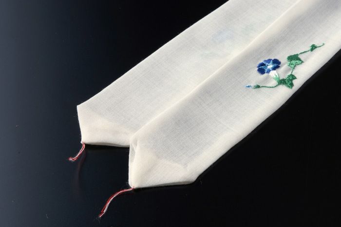 純毛モスリン(ウール)素材で、綿やシルクのものと比べると、締まりやすく緩みにくいのが特徴です。 モス腰ひも 刺繍 朝顔 / 白