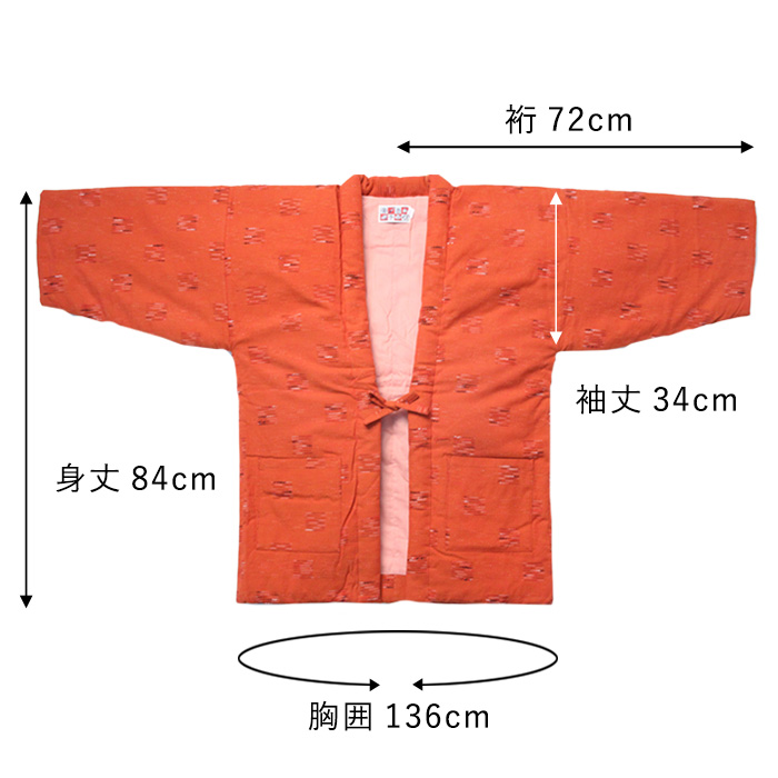 ●サイズ:身丈:84cm、裄72cm、袖丈34cm、胸囲136cm