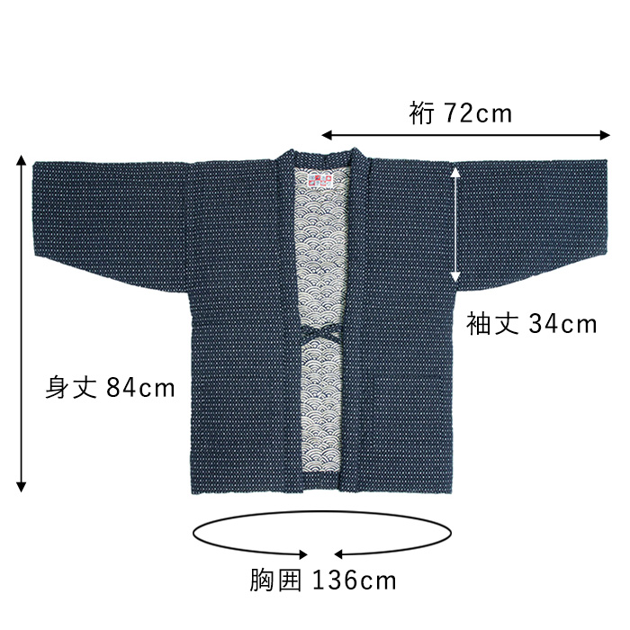 ●サイズ:身丈:84cm、裄72cm、袖丈34cm、胸囲136cm