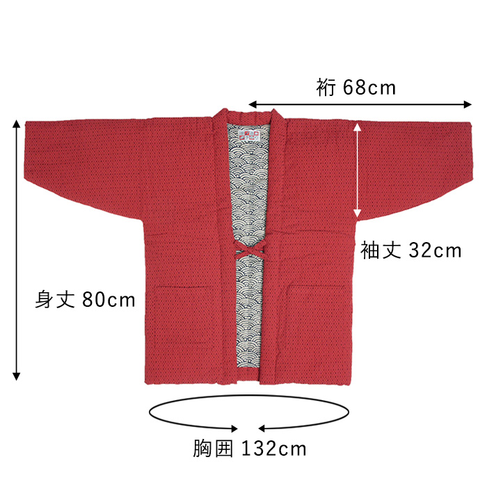 ●サイズ:身丈:80cm、裄68cm、袖丈32cm、胸囲132cm