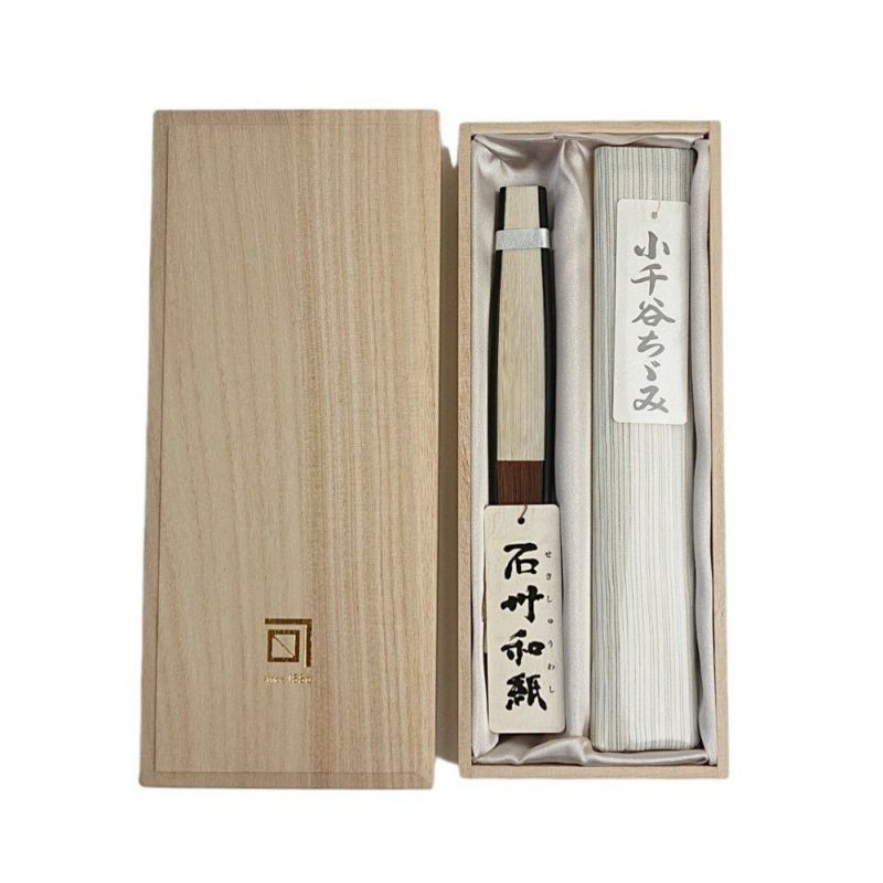 石州和紙 小千谷縮 扇子セット 紳士≪生成≫伝統工芸品
