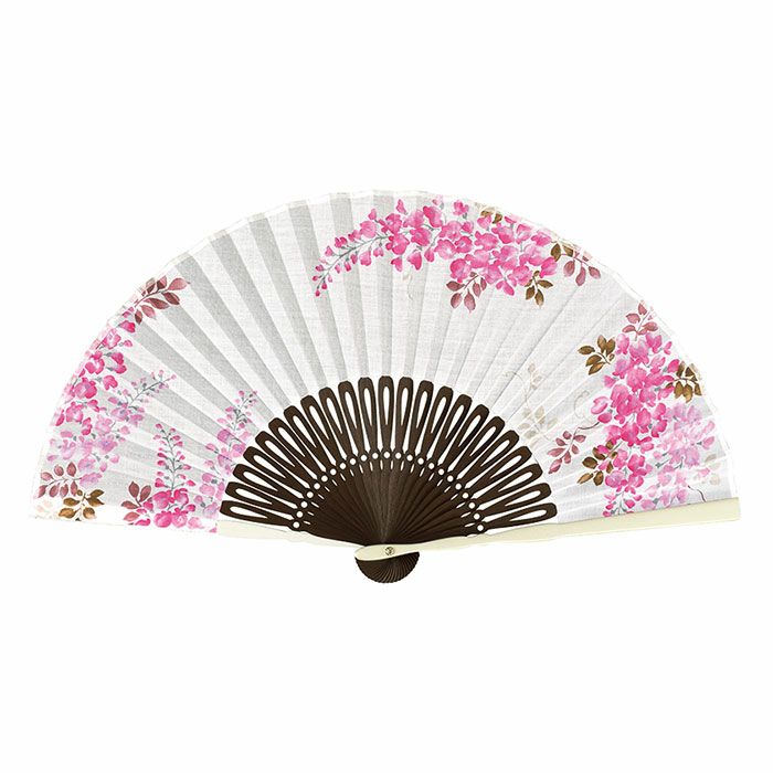 水彩タッチで涼やかに優しく揺らぐ藤の花です 扇子セット (紙箱入り)彩ゆらぎピンク 女性 扇子 京都 さんび