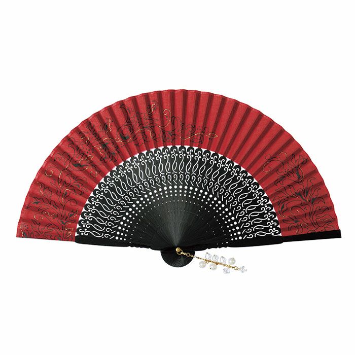扇面は凹凸感が出るようにプリントされ中骨彫柄は繊細かつ優雅です 扇子セット(桐箱入り) シャルマン赤 女性 扇子 京都 さんび