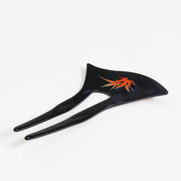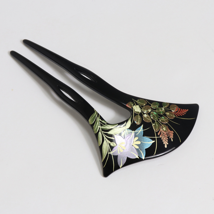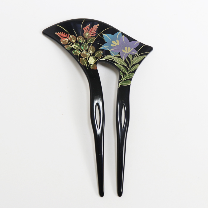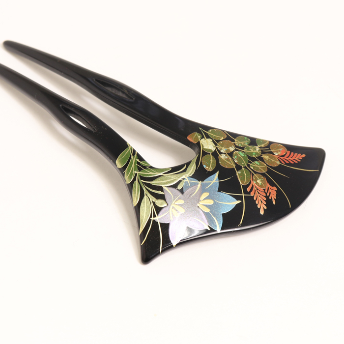 婚礼などの装いを引き立てる品格のある蒔絵で表現したかんざし 蒔絵かんざし 波型 桔梗柄 髪飾り 簪 かんざし 銀杏型 入卒用 着物用髪飾り