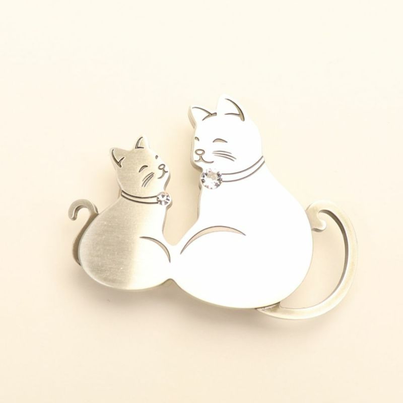 真鍮製のツヤと色合いの高級感ある帯留 真鍮 帯留【親子猫】 京都 さんび 日本製