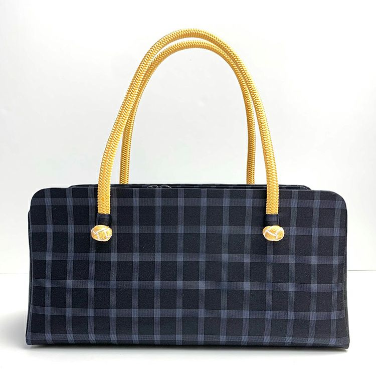 きもの姿との調和が美しい少し小ぶりの利休バッグ 大島紬の利休バッグ 格子柄 和装バッグ さんび 京都 日本製