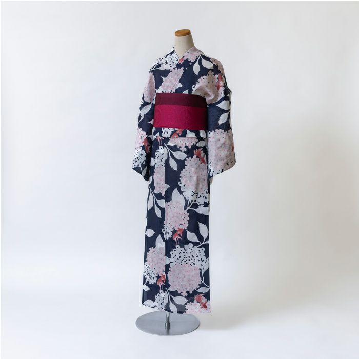 他の画像を見る 送料無料 浴衣は日本の夏を伝統的に彩る最高のファッションです ゆかた 花古今 紫陽花に金魚 (紺) 綿 ネイビー 仕立て上がり 日本製 ¥ 42,900 税込 詳細を見る お気に入りに登録する (0)